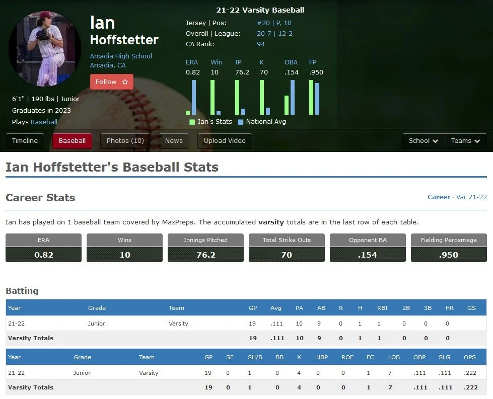 2023 RHP • 6’1” • 195 lbs • Arcadia High School • Arcadia, CA